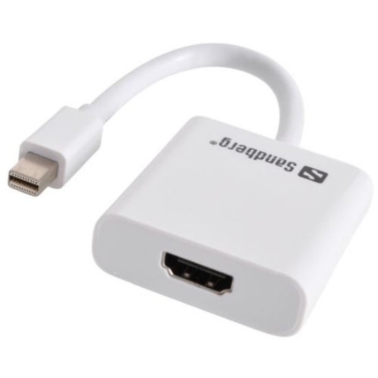 Sandberg Mini DisplayPort Male to HDMI Female Converter Cable, White, 5 Year WarrantySandberg Mini DisplayPort Male to HDMI Female Converter Cable, White, 5 Year WarrantyManufacturer: SANDBERG Add to compare listEmail a friend If you have Mini DisplayPort in a device you would like to connect to your TV via the HDMI input, then this adapter is the solution for you! Works with Thunderbolt as well as Mini DisplayPort.This product is sold out